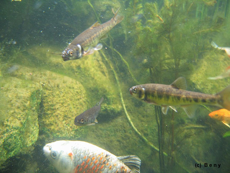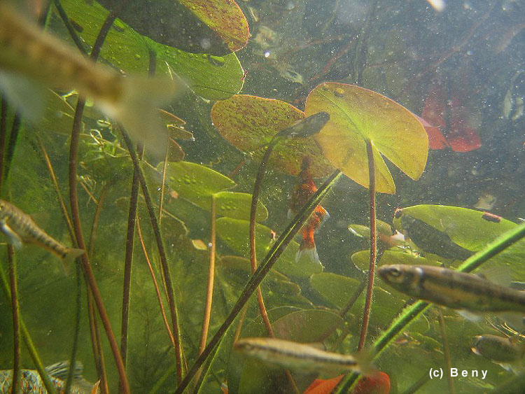 Jak je vidět na videu jsou v jezírku různé druhy ryb - od střevle, koljušky