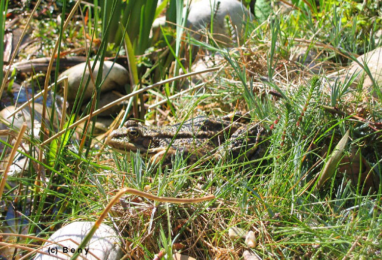 je velký zeleny skokan, který je obvykle ve vodě a když svití sluníčko tak se opaluje