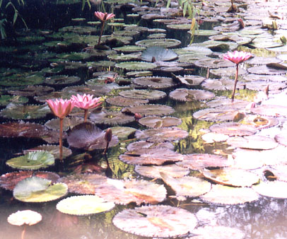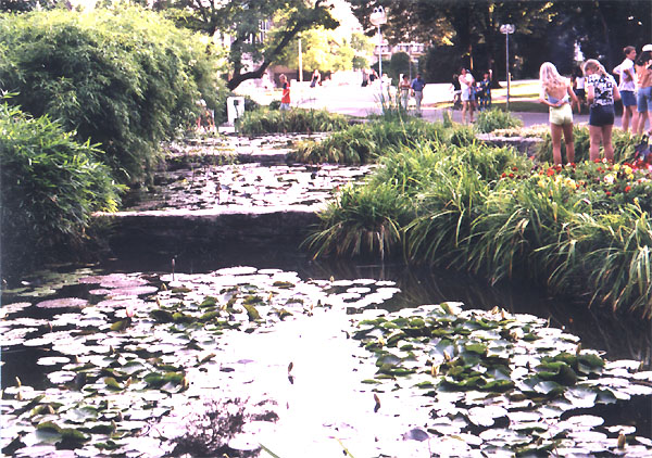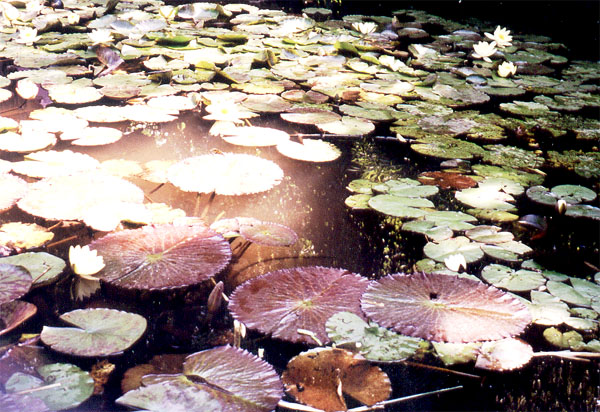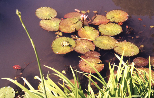 Hladina jezírek je pokryta spoustou leknínů. Teplota v jezírcích byla podle mne asi 24-25 st. C (v červenci). Ryby jsou zde chovány údajně celoročně, protože se jedná o termální pramen.
