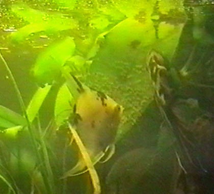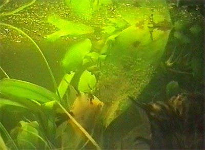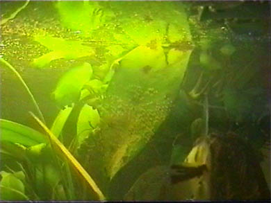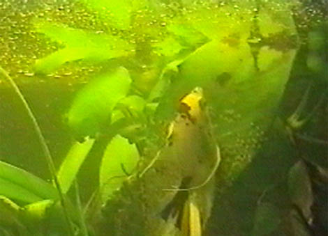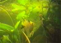 samice vpravo klade jikry, samec vyčkává vlevo