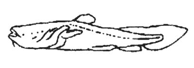 Hlava je široká a také zploštělá. Oči jsou malé. Tuková ploutvička plynule navazuje na ocasní ploutev,