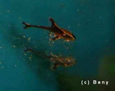 Nejraději se pohybují v horních vrstvách vody, kde i odpočívají zavěšení na kořeni nebo dlouhých listech