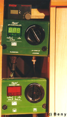 Je řízeno pomocí Dennerle pH Controller a magnetickým ventilem.