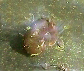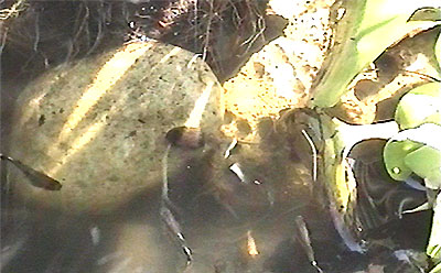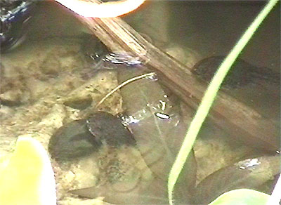 Jedna záhada, kterou se mi zatím nepodařilo odhalit, je to, co mi chytá velké plže (hnědí okružáci přes 3 cm). Vždy na stejném místě jim něco rozbije ulitu a maso sní. Každý týden tam nacházím kolem 10 prázdných ulit. Nějaké zvíře vytahuje plže z vody na zem a zezadu jim udělá asi 1 cm velkou kulatou dírku, kterou vytáhne obsah. Zatím se mi nepodařilo nikoho přistihnou při činy. Malé šnečky to buď ignoruje nebo je to pojídá i s ulitou.
