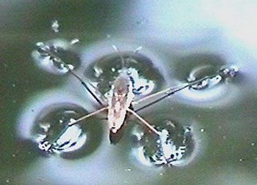 Po hladině se prohání spousta vodoměrek, jejich mláďata teď měří kolem 1,5 cm.