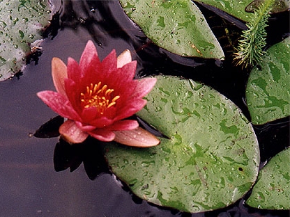 leknínu odříznutá na jaře zakvetla asi pěti květy na konci prázdnin. To, že lekníny začaly prosperovat