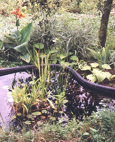 Jezírko je plastové o objemu kolem 450 l a je umístěné směrem na jih. Voda je v něm pouze děštová.
